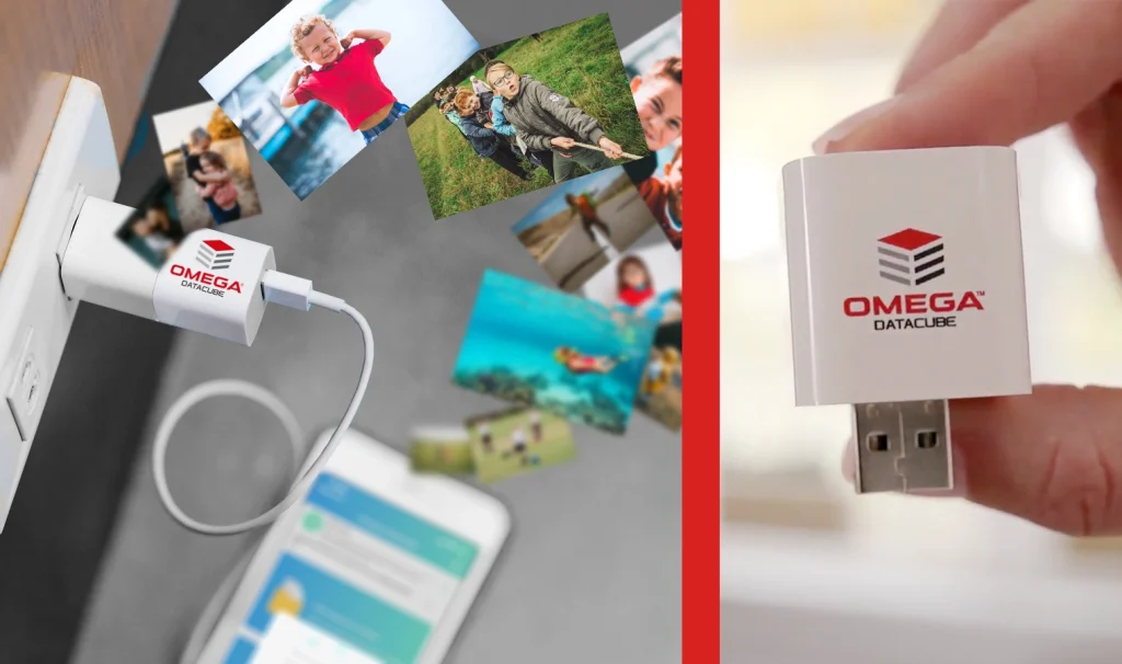 Omega DataCube is a powerful data backup device that automatically finds and securely backs up ALL your photos, videos, documents, voice memos, music and more. It’s compatible with phones, tablets, and even computers — and it automatically activates, backing up your precious data as you charge your device. It’s the easiest, most convenient way to keep your memories safe while freeing up storage!